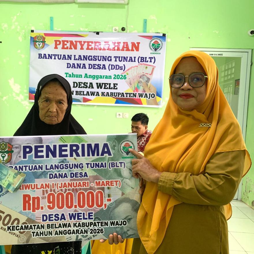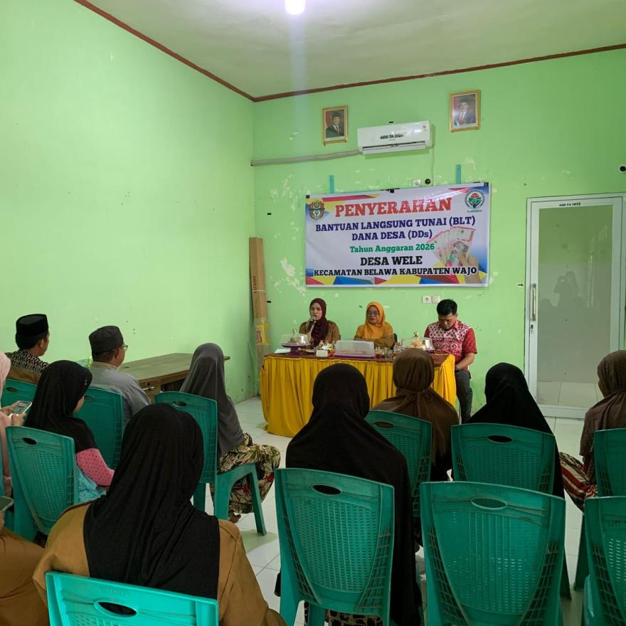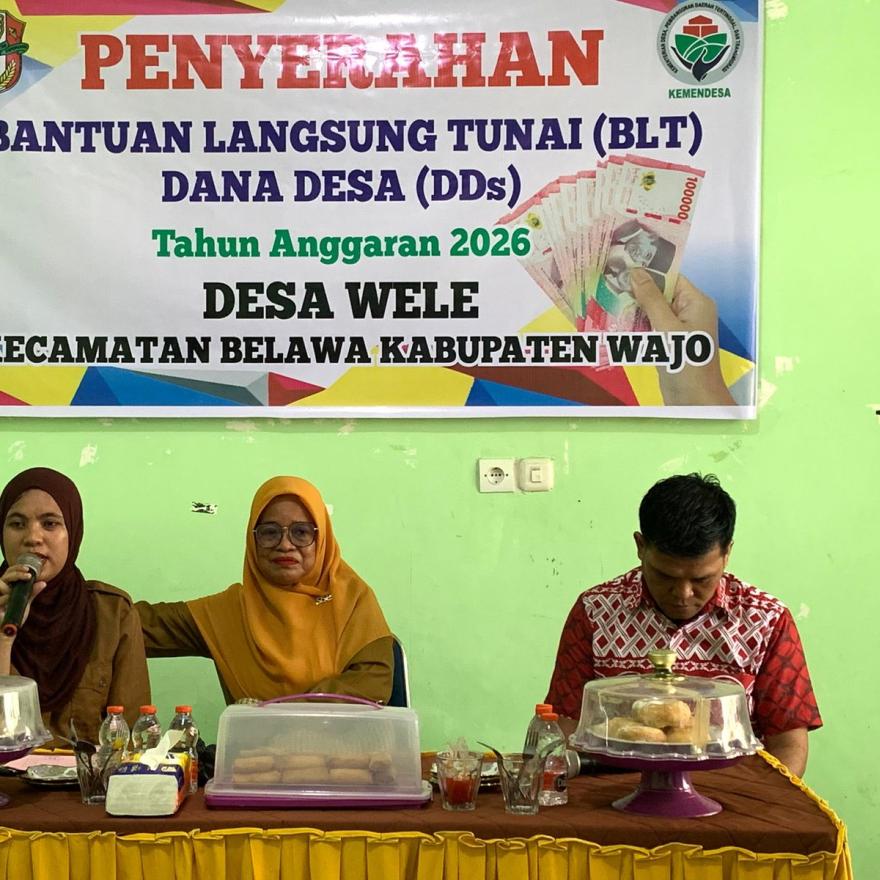 WELE – Pemerintah Desa Wele, Kecamatan Belawa, secara resmi menyalurkan Bantuan Langsung Tunai Dana Desa (BLT-DD) untuk Tahun Anggaran 2026 Triwulan I. Kegiatan yang berlangsung pada Senin, 30 Maret 2026 ini bertempat di Balai Desa Wele dengan mengedepankan prinsip tertib administrasi dan transparansi.
